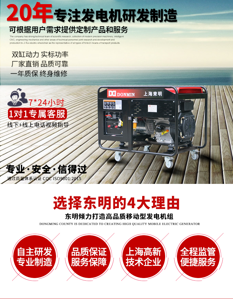 - 上海東明12KW單三相柴油發電機組DMDS15000LE。