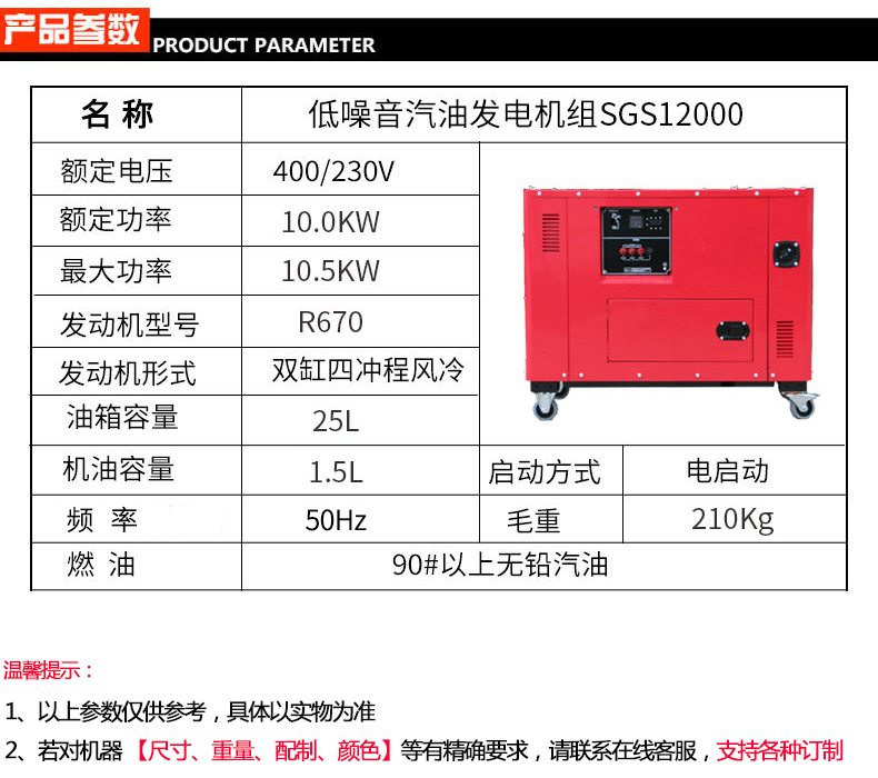 * 表示必填采購:三相10kW低噪音汽油發(fā)電機 SGS12000