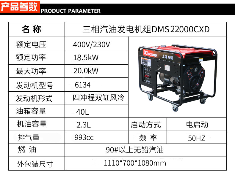 * 表示必填采購:三相20kW小型汽油發電機組 DMS22000CXD