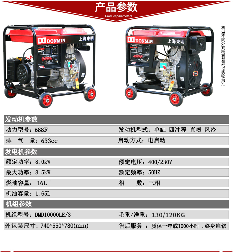 - 上海東明單三相8KW 8000W柴油發電機組DMDS10000LE。